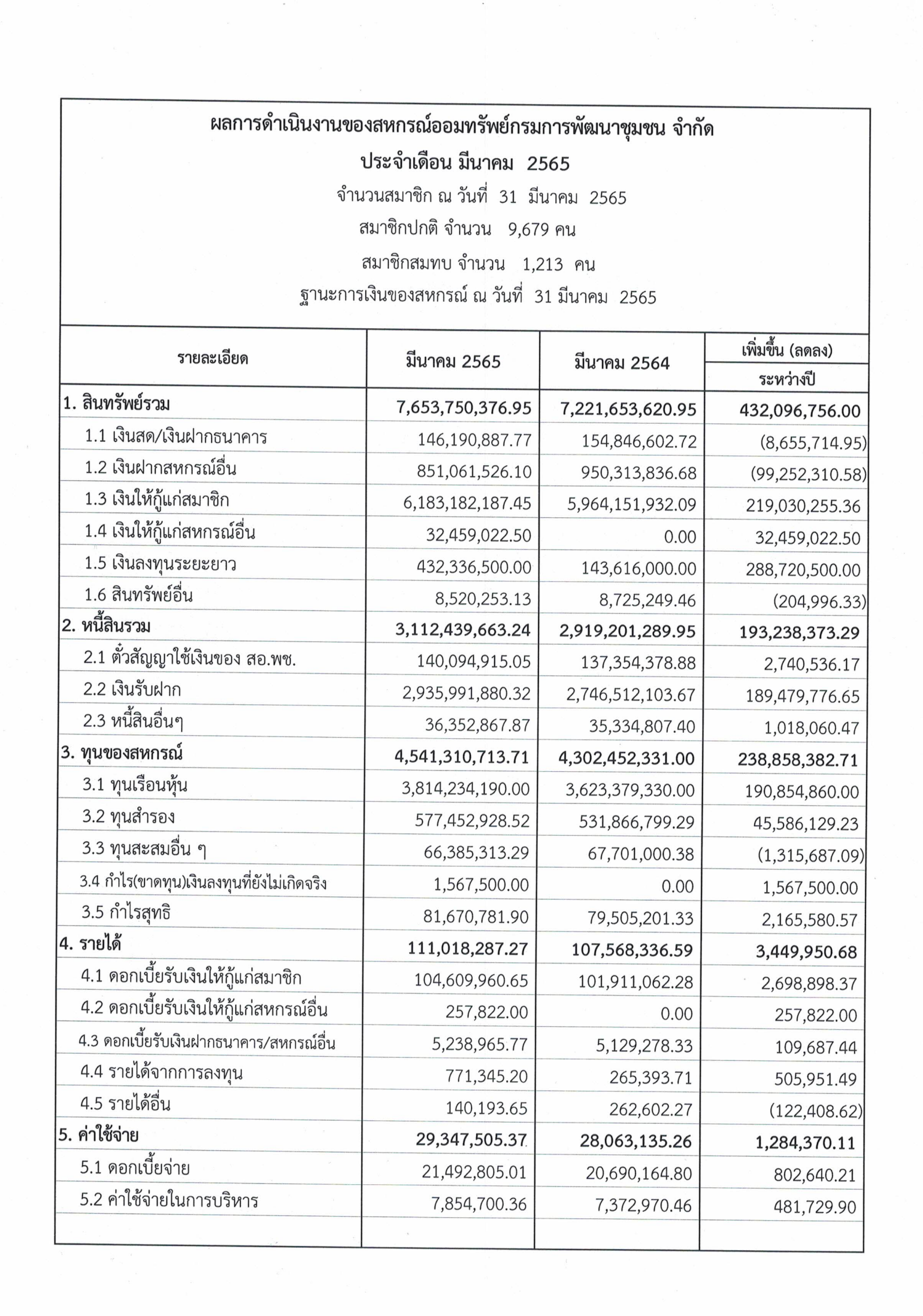 ผลการดำเนินการ สอ.พช. ประจำเดือน มีนาคม 2565